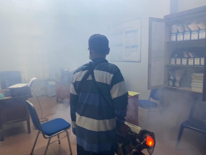 Tanjung Pura, Tapanuli – Rumah Tahanan Negara Kelas IIB Tanjung Pura bergerak cepat dalam upaya pencegahan penyebaran penyakit terutama Demam Berdarah Dengue (DBD) pasca banjir dengan melakukan fogging diseluru area Rutan. Sabtu (20/12)