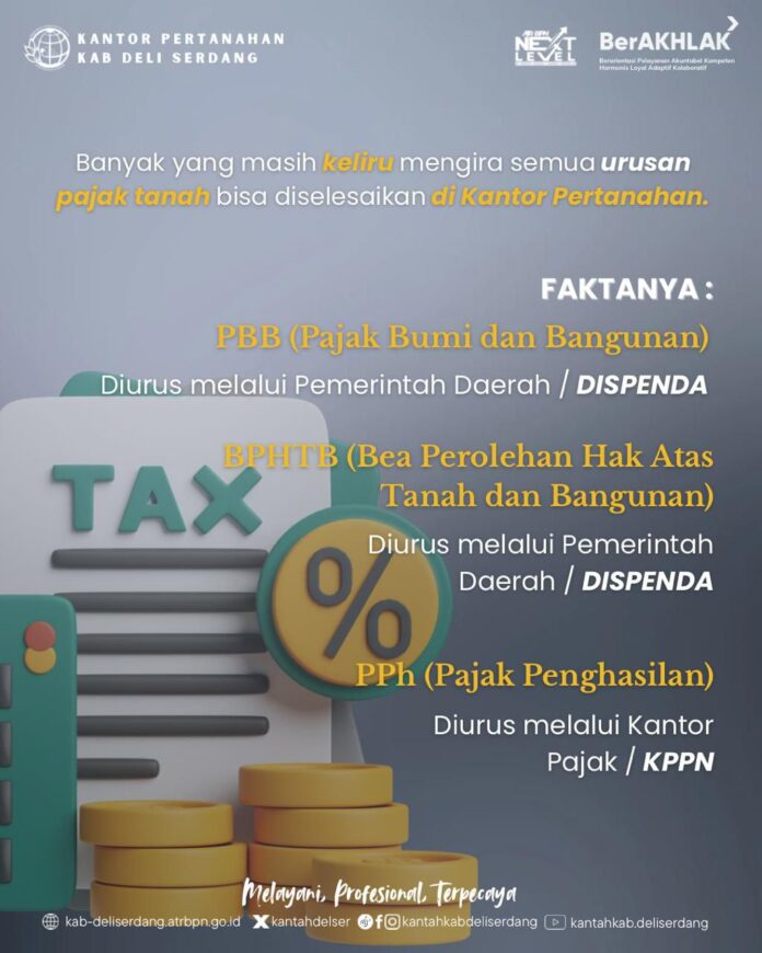 Deli Serdang, Tapanuli – Banyak warga yang masih keliru mengenai urusan pajak tanah, menurut pihak Kantor Pertanahan Kabupaten Deli Serdang. Beberapa warga sering kali datang ke kantor ini dengan harapan bisa menyelesaikan urusan pajak tanah, padahal kenyataannya ada berbagai jenis pajak yang harus diurus di instansi yang berbeda.