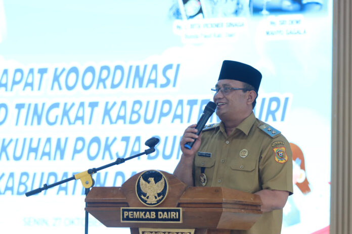 Sementara itu, Bupati Dairi dalam sambutannya yang disampaikan oleh Wakil Bupati Dairi mengatakan rapat koordinasi ini yang pertama dilakukan sejak dikukuhkannya Bunda Paud Dairi oleh Bunda Paud Sumatera Utara Kahiyang Bobby Nasution pada 14 Agustus 2025 di Gedung Raja Inal Siregar Kota Medan.