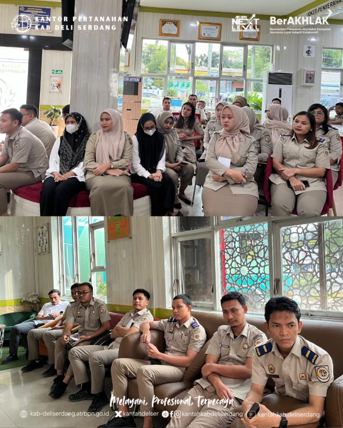 Tapanuli, Deli Serdang – Kepala Kantor Pertanahan Kabupaten Deli Serdang, Mahyu Danil, S.S.T., M.H., memberikan arahan kepada seluruh pegawai terkait percepatan penyelesaian tunggakan pekerjaan, Senin (12/1/2026).