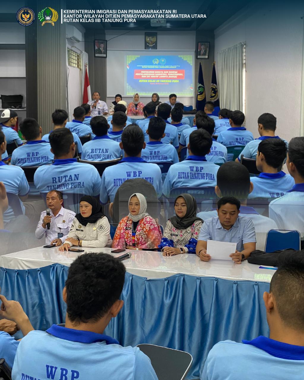 Tanjung Pura, Tapanuli – Rumah Tahanan Negara Kelas IIB Tanjung Pura melaksanakan kegiatan penyuluhan bahaya dan dampak penyalahgunaan Narkotika, Psikotropika, dan Zat Adiktif Lainnya (NAPZA) yang diselenggarakan bersama BNNK Langkat, Kamis (26/02).