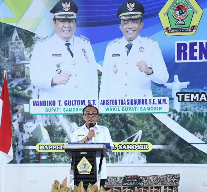 Dalam sambutannya, Wakil Bupati Ariston Tua Sidauruk menegaskan bahwa seluruh program pembangunan daerah harus sejalan dengan kebijakan pemerintah provinsi dan pusat agar saling mendukung.