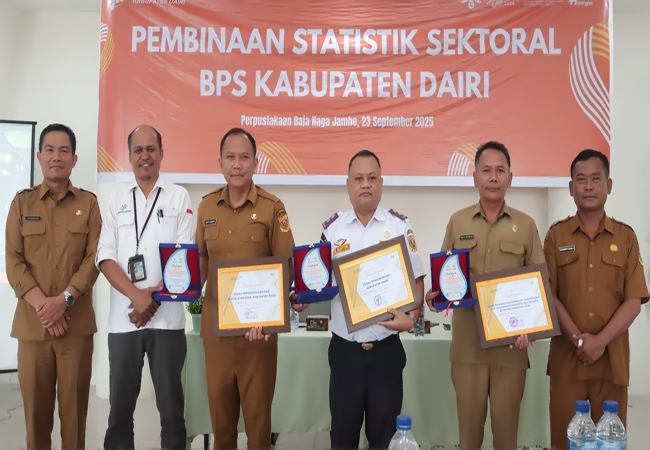 Dalam kesempatan tersebut, BPS Dairi memberikan apresiasi kepada tiga OPD terbaik dalam pembinaan statistik sektoral, yakni Dinas Kependudukan dan Pencatatan Sipil (Dukcapil), Dinas Perhubungan, dan Dinas P3AP2KB.