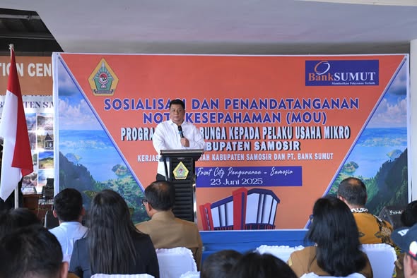 SAMOSIR – SAMOSIR – Dalam upaya meningkatkan kualitas dan kuantitas produk usaha mikro, kecil, dan menengah (UMKM), Pemerintah Kabupaten Samosir menjalin kerja sama dengan PT Bank Sumut melalui penandatanganan nota kesepahaman (MoU) program subsidi bunga pinjaman bagi pelaku usaha mikro.