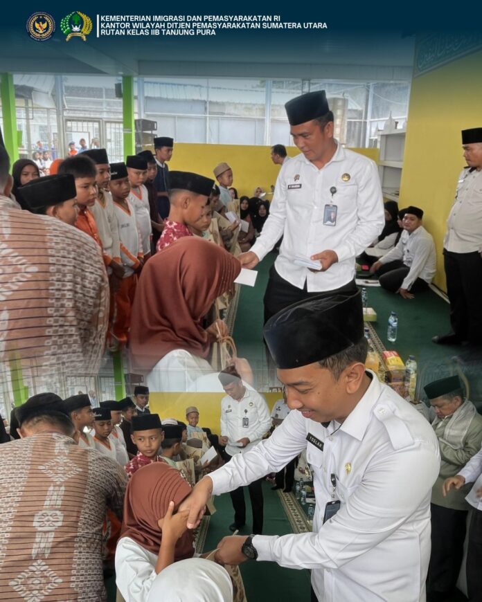 Sebagai bentuk kepedulian sosial, Karutan Fransisco Pandia juga menyerahkan tali kasih dan cenderamata kepada anak-anak yatim dan piatu yang hadir sebagai tamu undangan. Pemberian ini merupakan simbol silaturahmi dan rasa berbagi kebahagiaan dari keluarga besar Rutan Tanjung Pura kepada masyarakat sekitar.