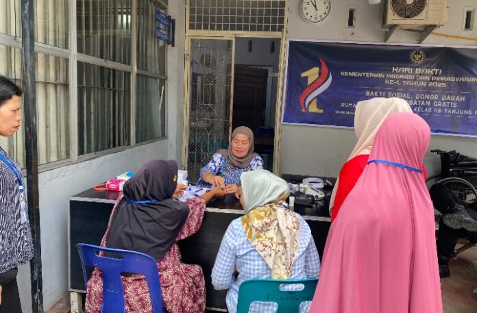 Layanan Kesehatan gratis diberikan oleh tenaga medis Rutan Tanjung Pura yakni dokter dan perawat dengan memberikan layanan berupa pemeriksaan umum, pengecekan tekanan darah, serta konsultasi Kesehatan.
