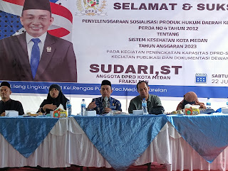 Sudari ST saat diwawancarai awak media usai mengelar Reses tersebut menjelaskan, dalam reses sosialisasikan Perda nomor 4 Thn 2012 tentang sistem kesehatan kota Medan.