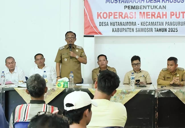 Sementara itu, Sekretaris Deputi Bidang Pengembangan Usaha Koperasi, Gendo Saragih, mengapresiasi antusiasme masyarakat Desa Hutanamora dalam musyawarah pembentukan koperasi tersebut.